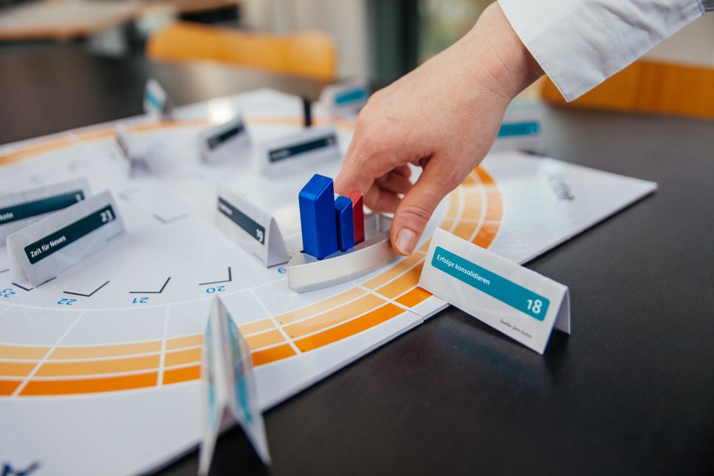Durch die Visualisierung auf dem Cycle of Change und die Arbeit mit dem physischen Spielbrett entstehen Formate, die: